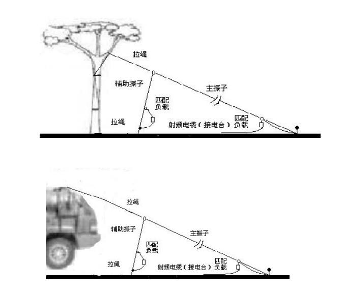 斜拉架設的方向圖接近全向全角,改善盲區(qū)通訊。架設時先釘好一只地釘,將振子底端在地釘上固定,然后將振子斜向拉直,栓在2-6米高的支撐物或者架桿上。后將輔助振子向下拉直固定在另一只地釘(釘入地面)上。架設方向沒有嚴格要求。