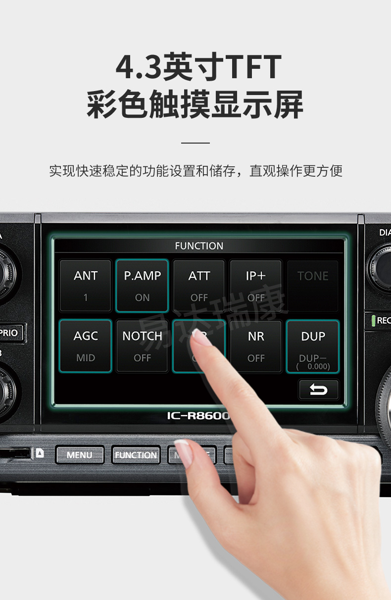 • 10KHz-3GHz寬頻段接收,4.3英寸彩色觸摸屏。
