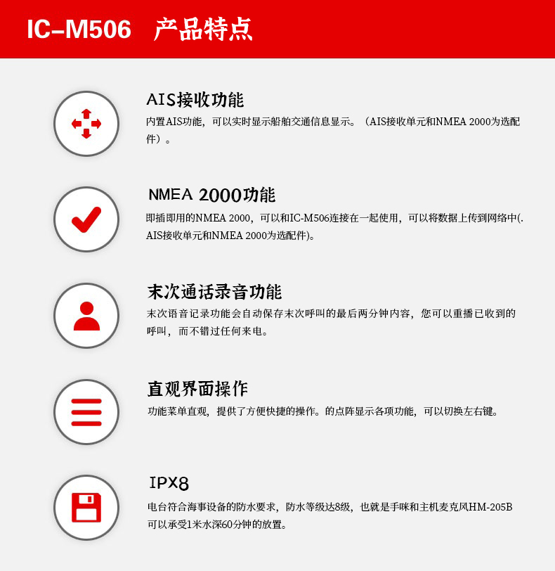 您當(dāng)前的位置: 首頁 > 產(chǎn)品中心 > ICOM艾可慕IC-M506海事車載電臺