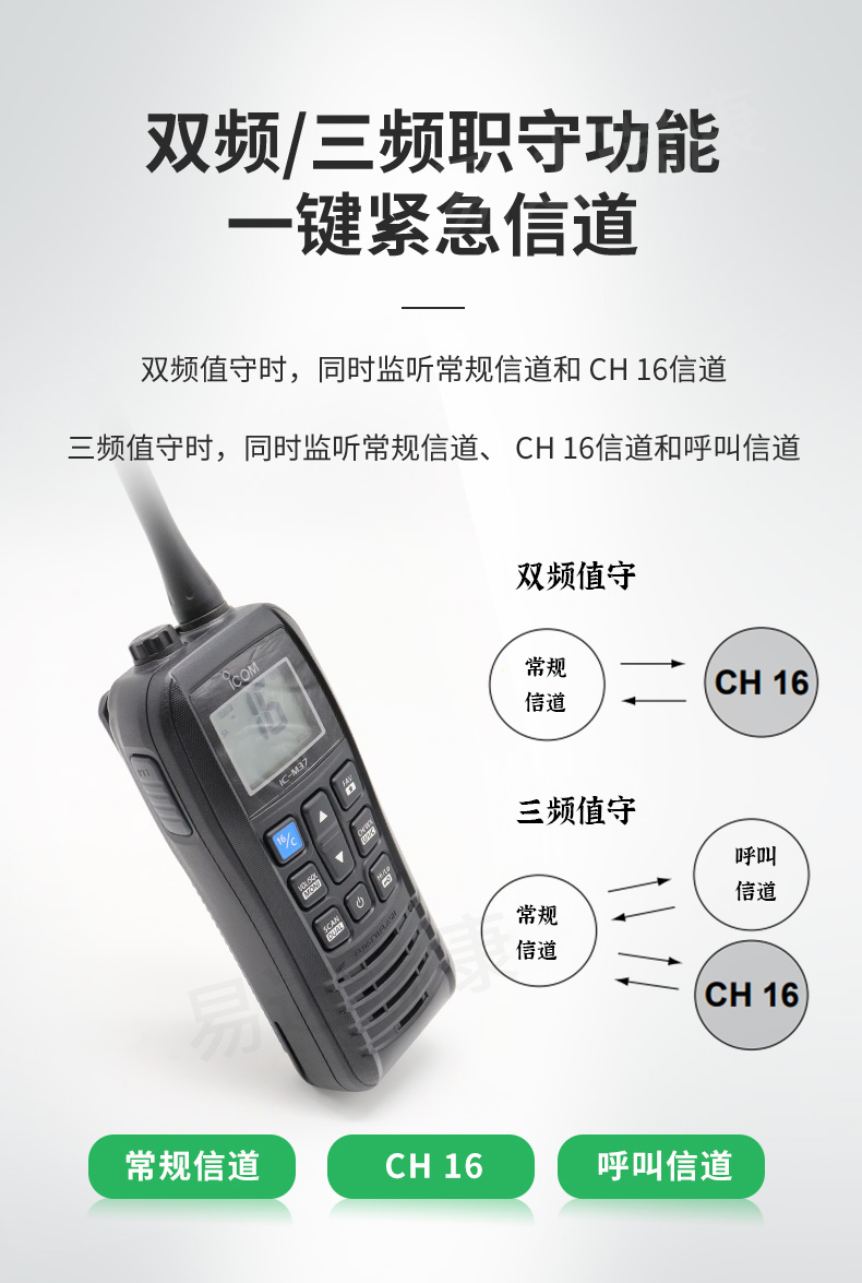 IC-M37艾可慕ICOM海事對講機手持電臺大功率輸出水上專票