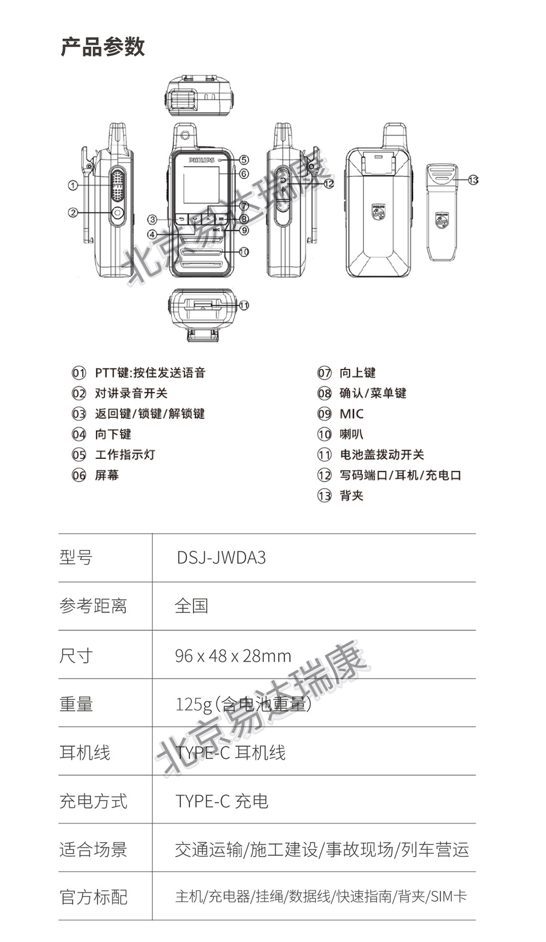飛利浦雙卡雙待全國(guó)插卡對(duì)講機(jī)DSJ-JWDA3
