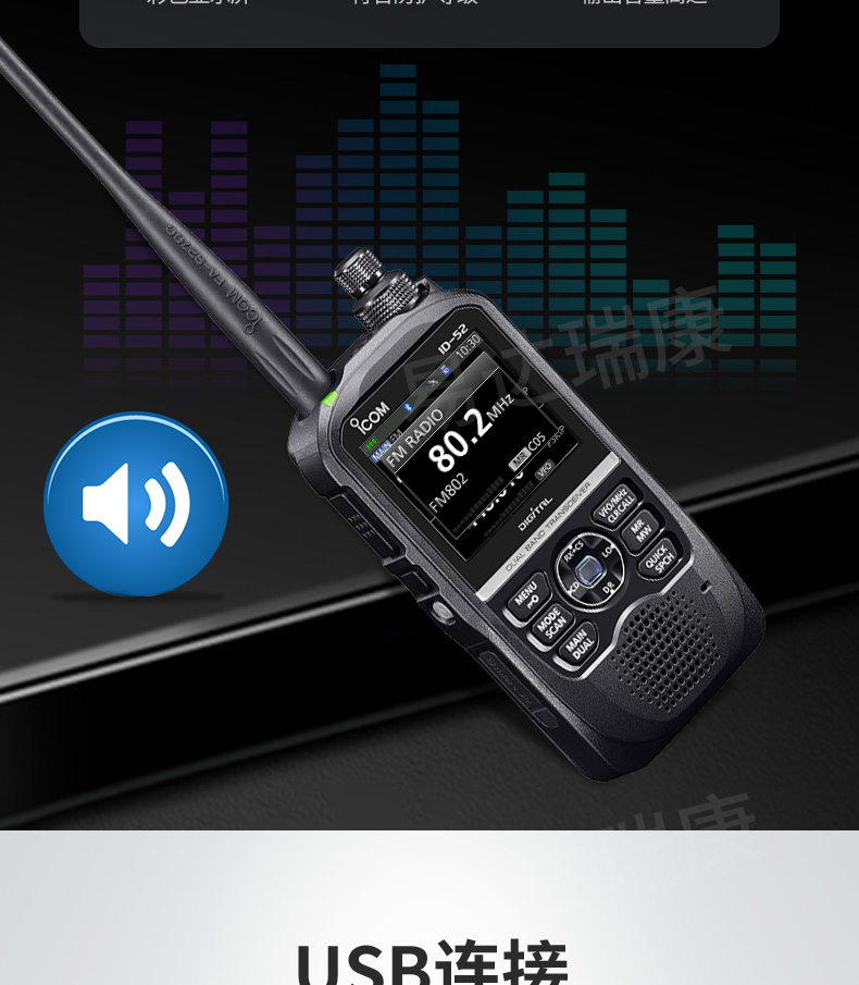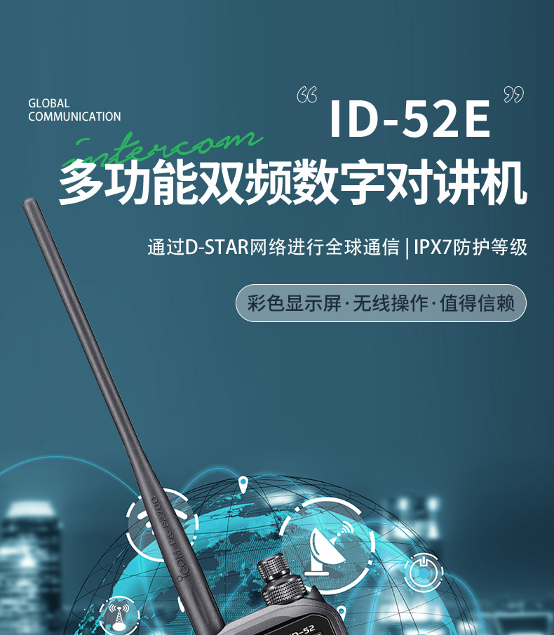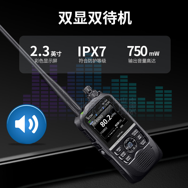 icom艾可慕ID-52E業(yè)余雙待雙顯VHFUHF對(duì)講機(jī)戶外數(shù)模適用