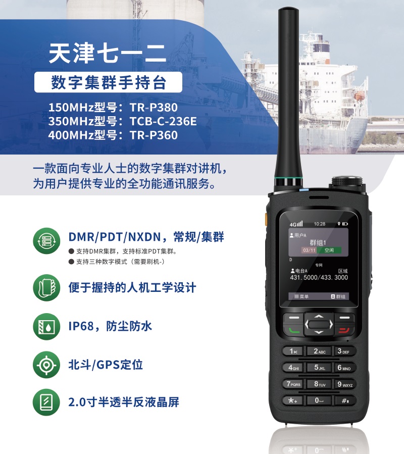 天津七一二集群手持臺(tái)VHF:TR-P380,UHF:TR-P360,350M:TCB-C-236E