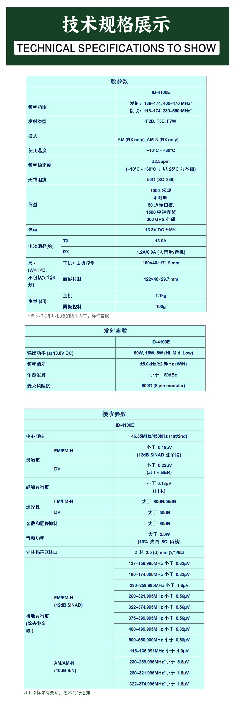 說明:以上條款均以摩托羅拉公司,威泰克斯,艾可慕,健伍公司的有關(guān)規(guī)定為準(zhǔn)。