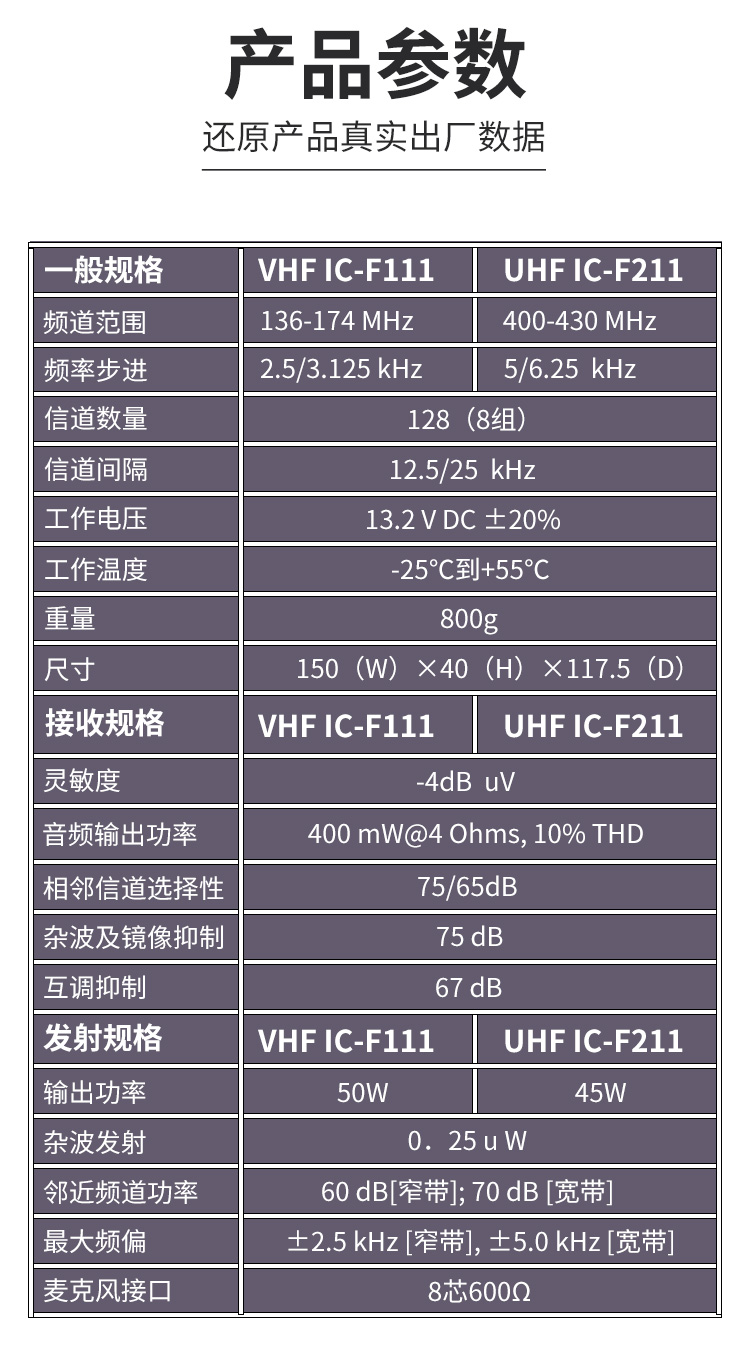 ICOM艾可慕IC-F111模擬車載電臺(tái)